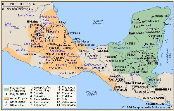 Pe la 1325, aztecii au pătruns în sudul Mexicului, întemeind oraşul Tenoch-titlan (viitorul oraş Mexico). Ulterior, regii azteci au mărit imperiul prin cuceriri, dominând tot Mexicul central.