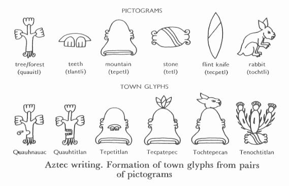 Limba Nahuatl a folosit inițial o scriere pictografică, care nu era exact un sistem complet de scriere, ci era mai degrabă un grup de semne grafice care aveau o funcție mnemonică pentru a le aminti celor ce le citeau informațiile pe care le învățaseră oral.